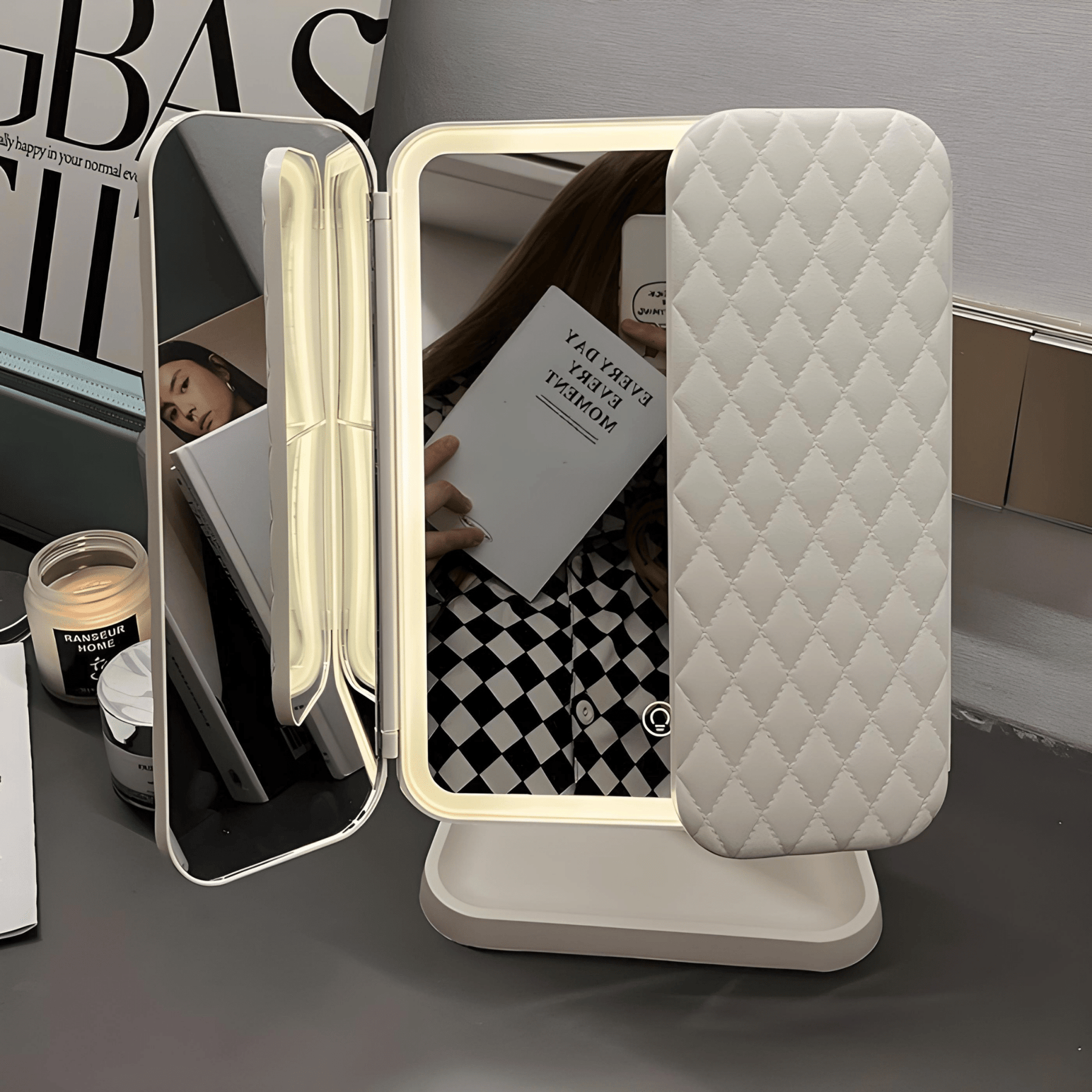 Bringen Sie mit Clara professionelle Beleuchtung in Ihr tägliches Styling – elegant, funktional und perfekt für jeden Moment.